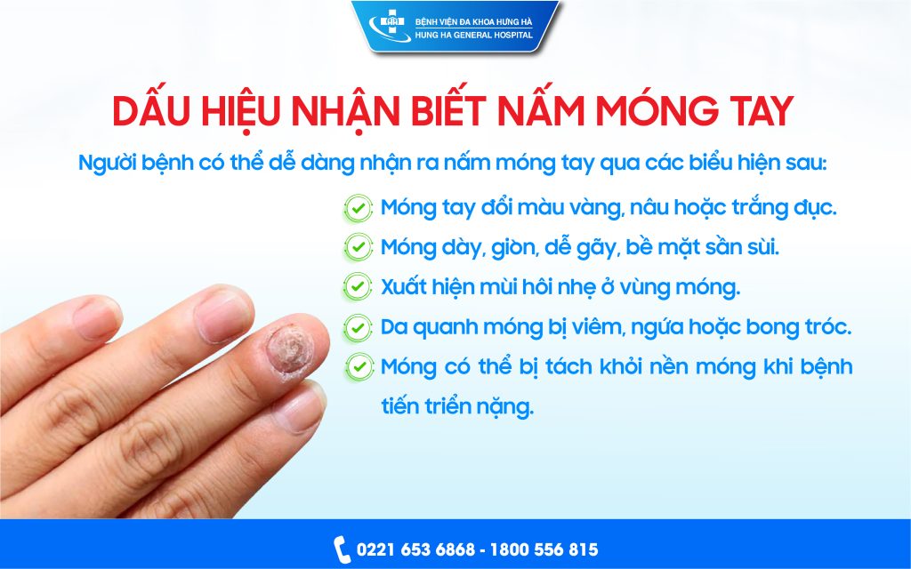 Nấm móng tay tuy không nguy hiểm đến tính mạng nhưng ảnh hưởng lớn đến thẩm mỹ và chất lượng cuộc sống. Phát hiện sớm, điều trị đúng cách và chăm sóc tốt là chìa khóa giúp móng khỏe mạnh, tránh tái phát. Hãy đến Bệnh viện Đa khoa Hưng Hà để được thăm khám và tư vấn chuyên sâu, bảo vệ đôi tay khỏe đẹp mỗi ngày. Liên hệ thêm Hotline để được tư vấn: 1800 556 815 (Miễn phí cuộc gọi).